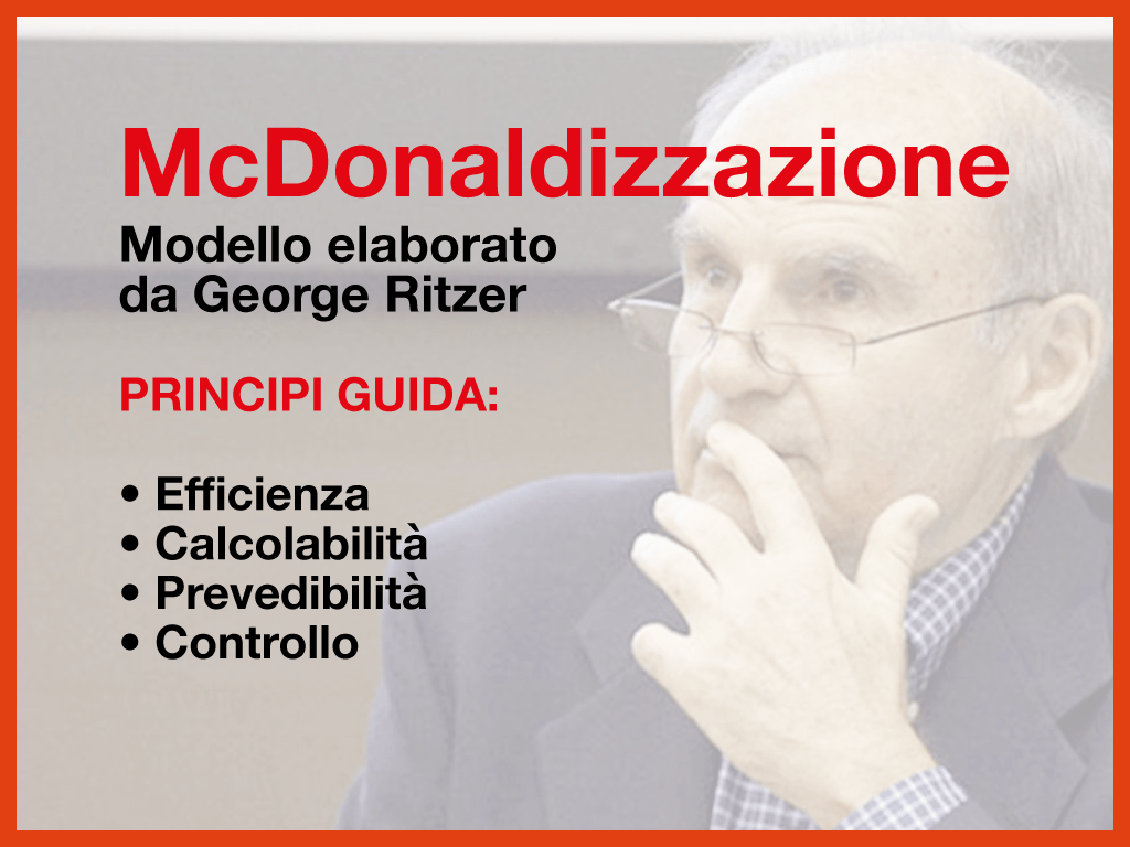 Ritzer si muove nel solco dell’analisi sociale inaugurata dal lavoro pionieristico di Max Weber, secondo cui la tendenza a cercare i modi più efficienti ed economici per raggiungere determinati scopi porta all’emersione di una razionalità formale: un insieme di criteri, regole e procedure la cui operatività è assicurata da un forte apparato burocratico.